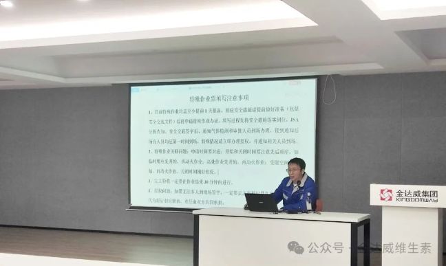 隨后,金達(dá)威維生素總經(jīng)理助理鐘星光對特殊作業(yè)流程審批進(jìn)行了重新梳理,結(jié)合節(jié)前迎檢時提出的不足強調(diào)了填寫的規(guī)范性及流程審批相關(guān)注意事項。